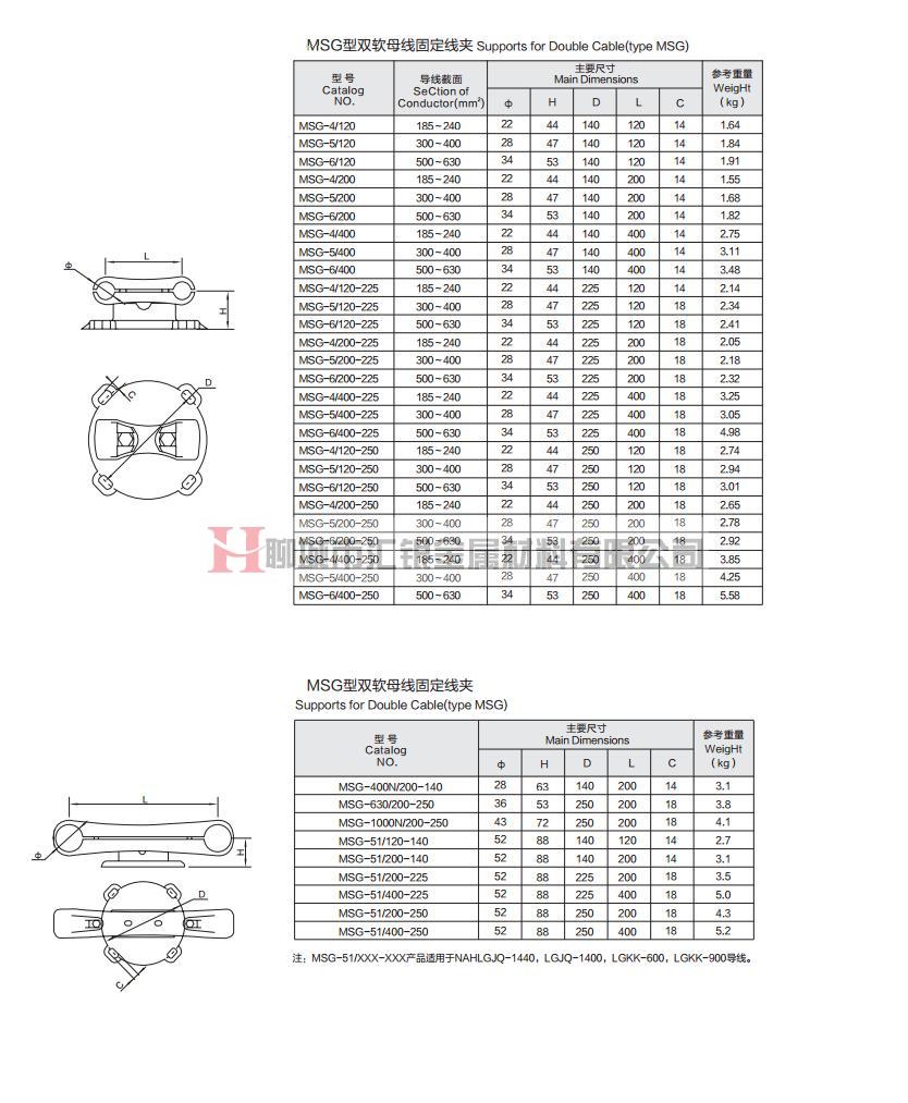 MSG型雙軟母線固定線夾 雙軟母線固定線夾 MSG型固定線夾 母線固定線夾